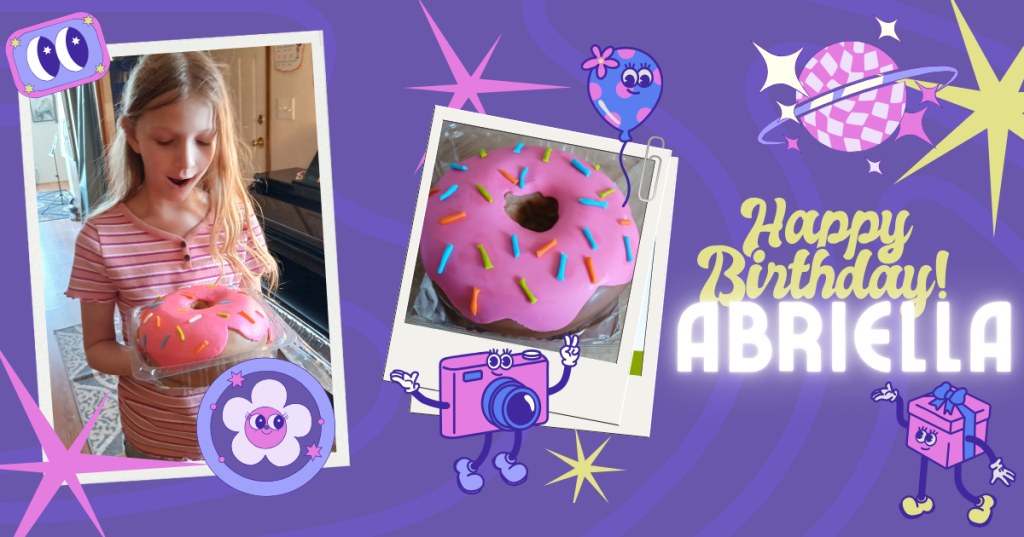 It’s Abriella’s birthday, so I surprised her with her favorite dessert as a birthday cake! It is a vanilla butter cake with marshmallow frosting. Yum!