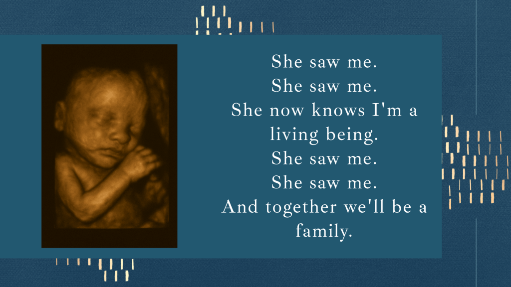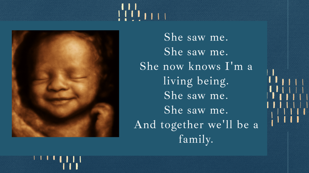 This song is written from the perspective of an unborn child, celebrating the very first time a mother sees her baby. It’s a gentle reminder of the beauty of life, the hope each new day brings, and the unconditional love that begins even before birth.